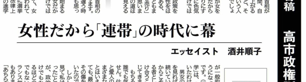 高市政権誕生に思う 女性だから「連帯」の時代に幕
